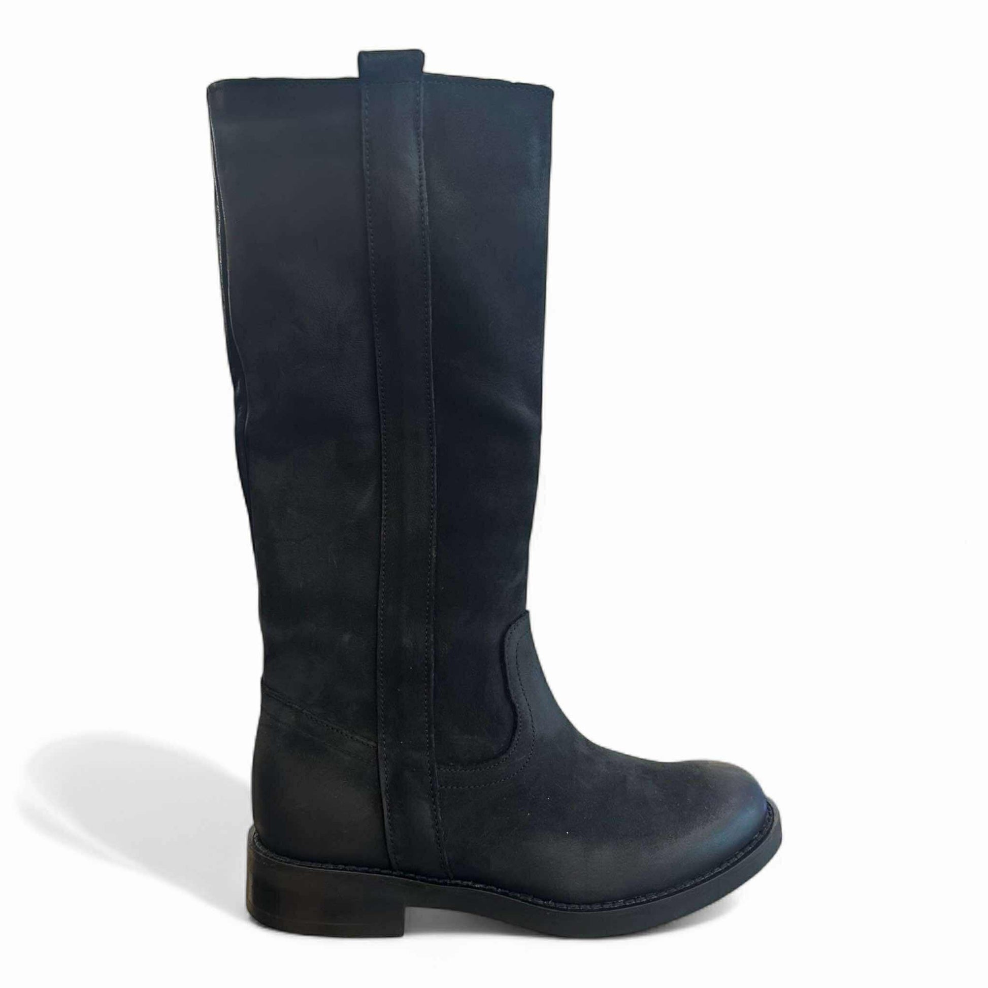 Camperos in pelle ingrassata nera punta arrotondata gambale senza cerniera (non ampio) fondo gomma
