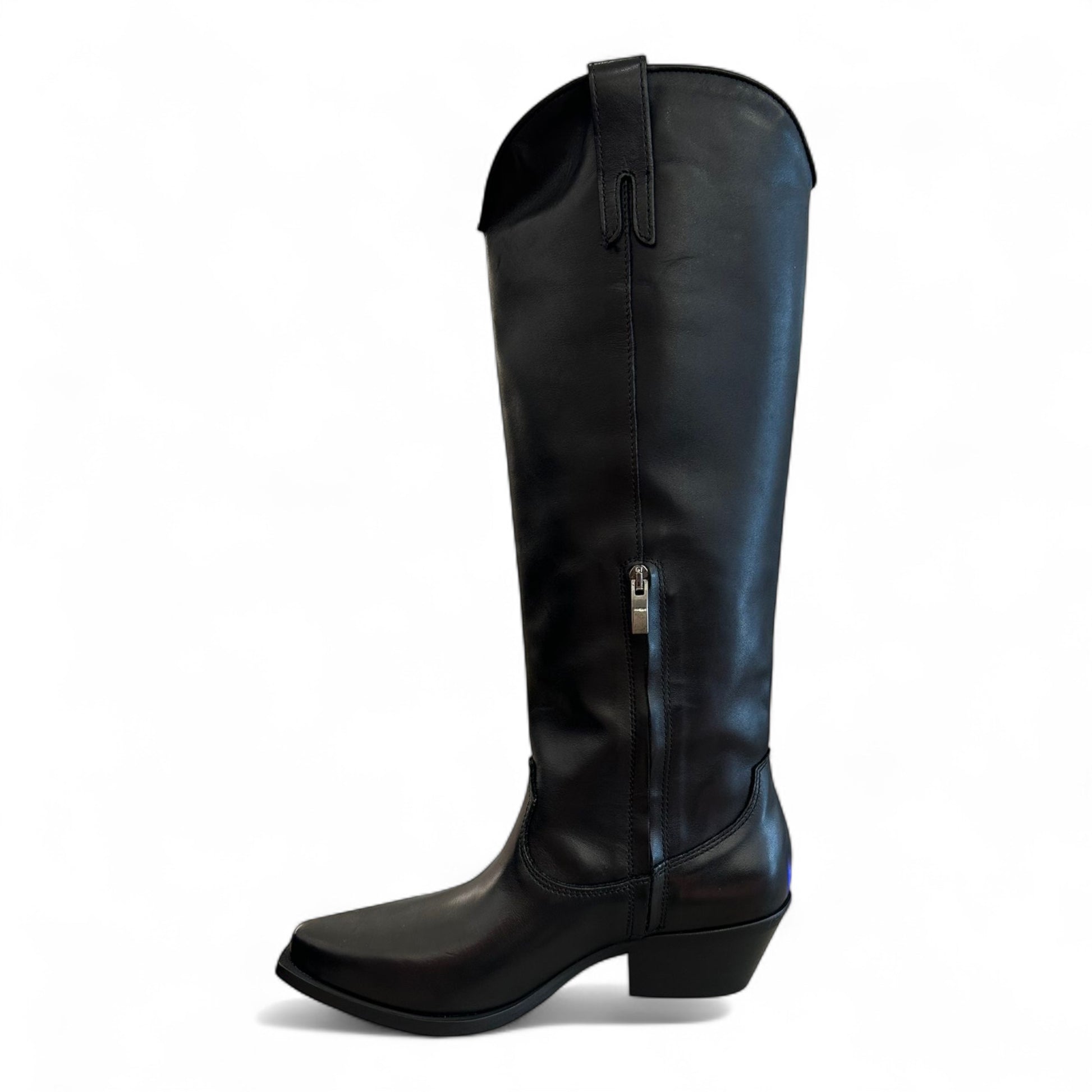 Texano in nappa entro gambale alto a filo ginocchio con cerniera laterale tacco 3 cm