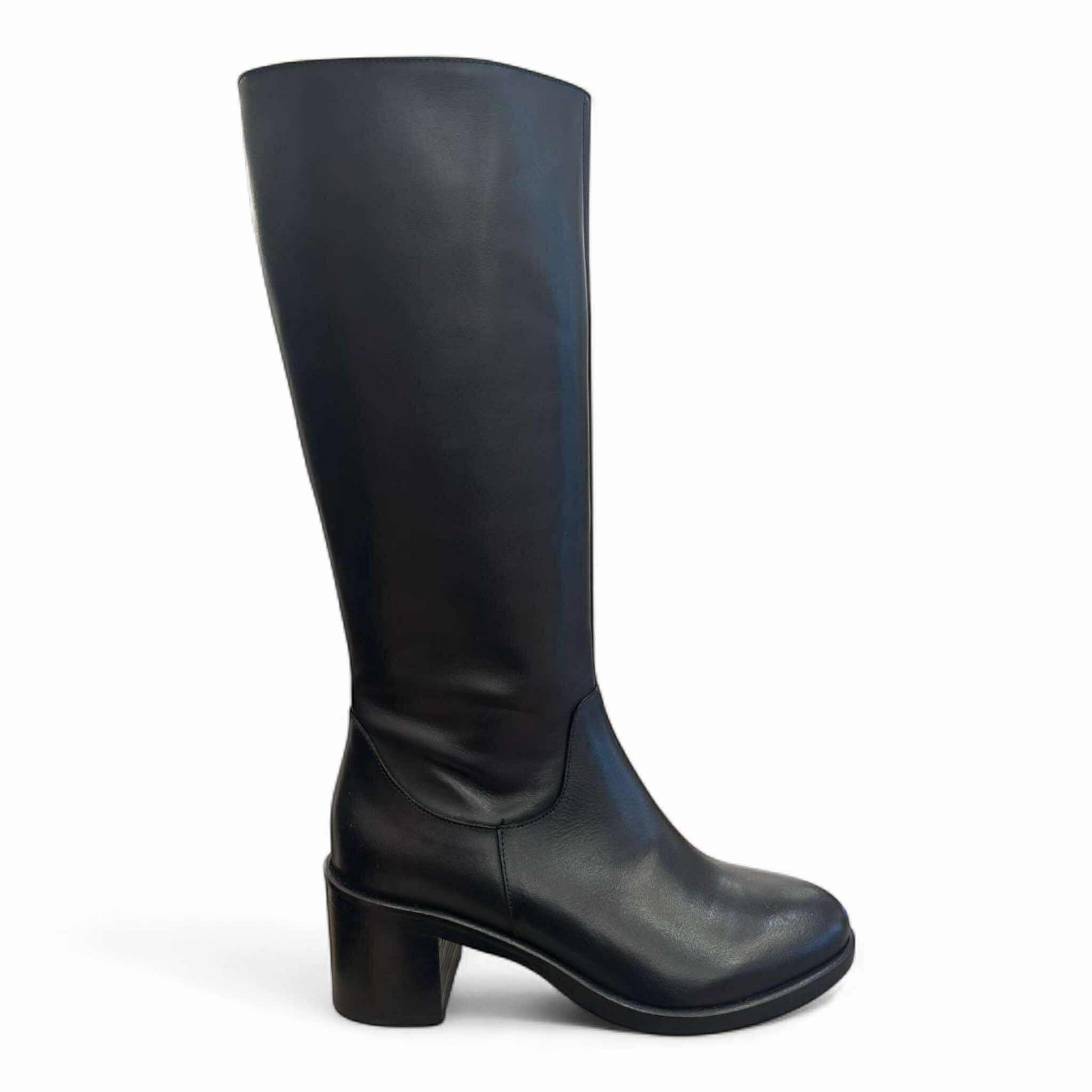 Lo stivale in nappa nera con tacco quadrato di 5 cm unisce eleganza e comfort in un design versatile. La punta arrotondata offre un tocco morbido e moderno, ideale per completare ogni look con stile e garantire una camminata stabile e confortevole tutto il giorno.