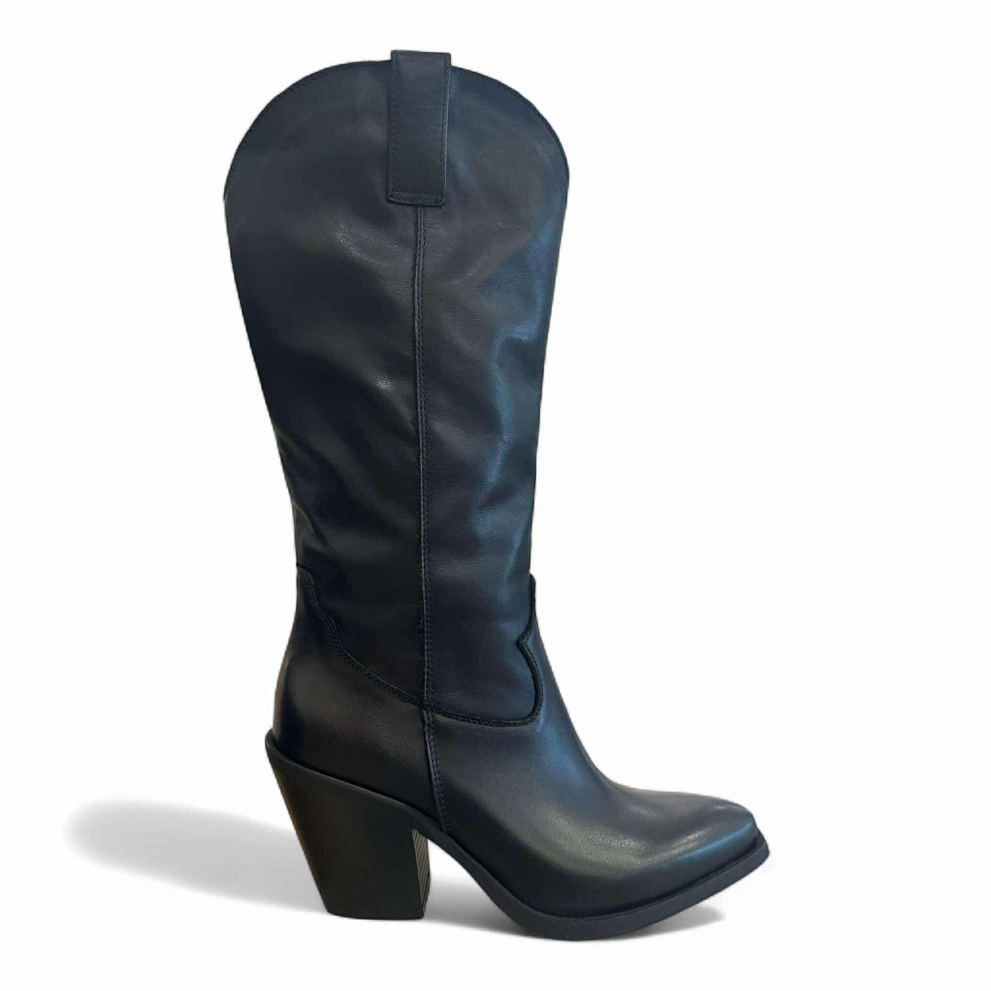 Questi texani sagomati in nappa nera con mezza cerniera sono l’ideale per mettere in risalto la caviglia con un tocco di stile unico. Il tacco da 7 cm regala slancio senza rinunciare al comfort, mentre lo scollo a V aggiunge un dettaglio audace e originale. Perfetti per chi vuole osare con un look deciso ma divertente!